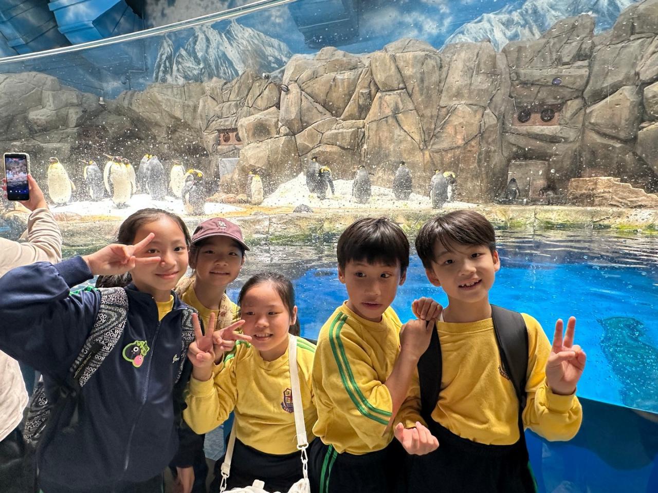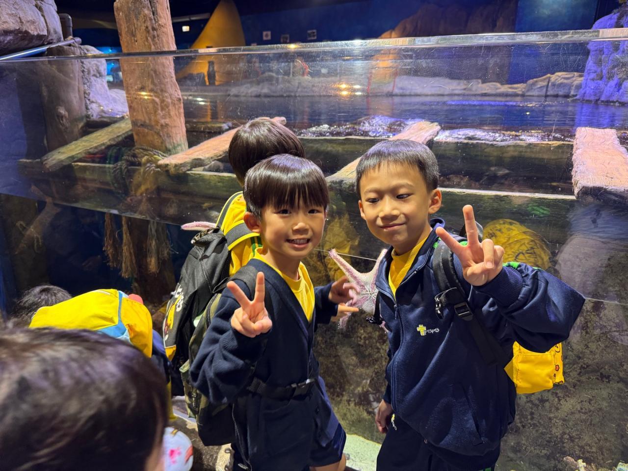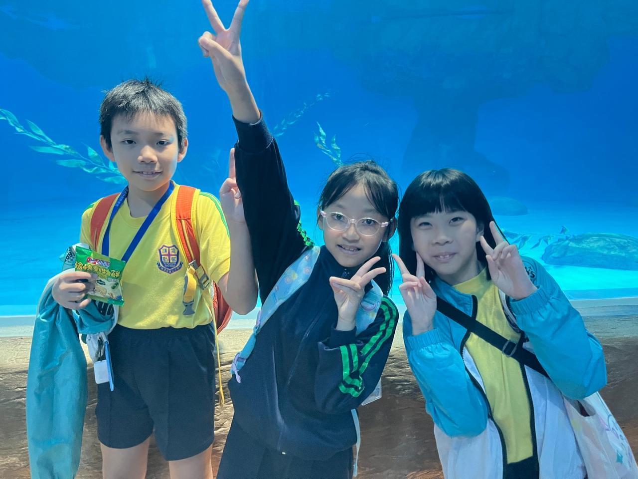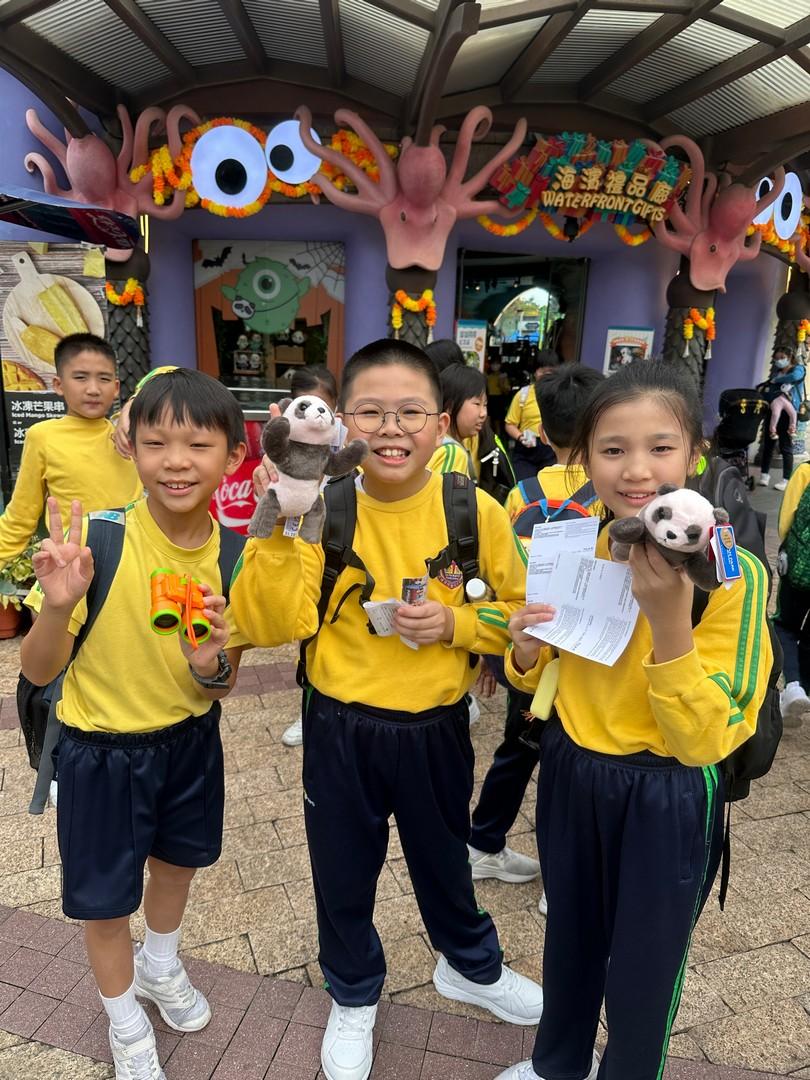 當天,三年級的同學們在海洋公園興奮地探索!大家認真觀察大熊貓的一舉一動。在水族館的藍色光影中,看著魚兒游來游去,臉上盡是驚嘆的表情!他們與同學渡過了一次難忘的戶外學習,回程時臉上也掛著滿足的笑容呢!