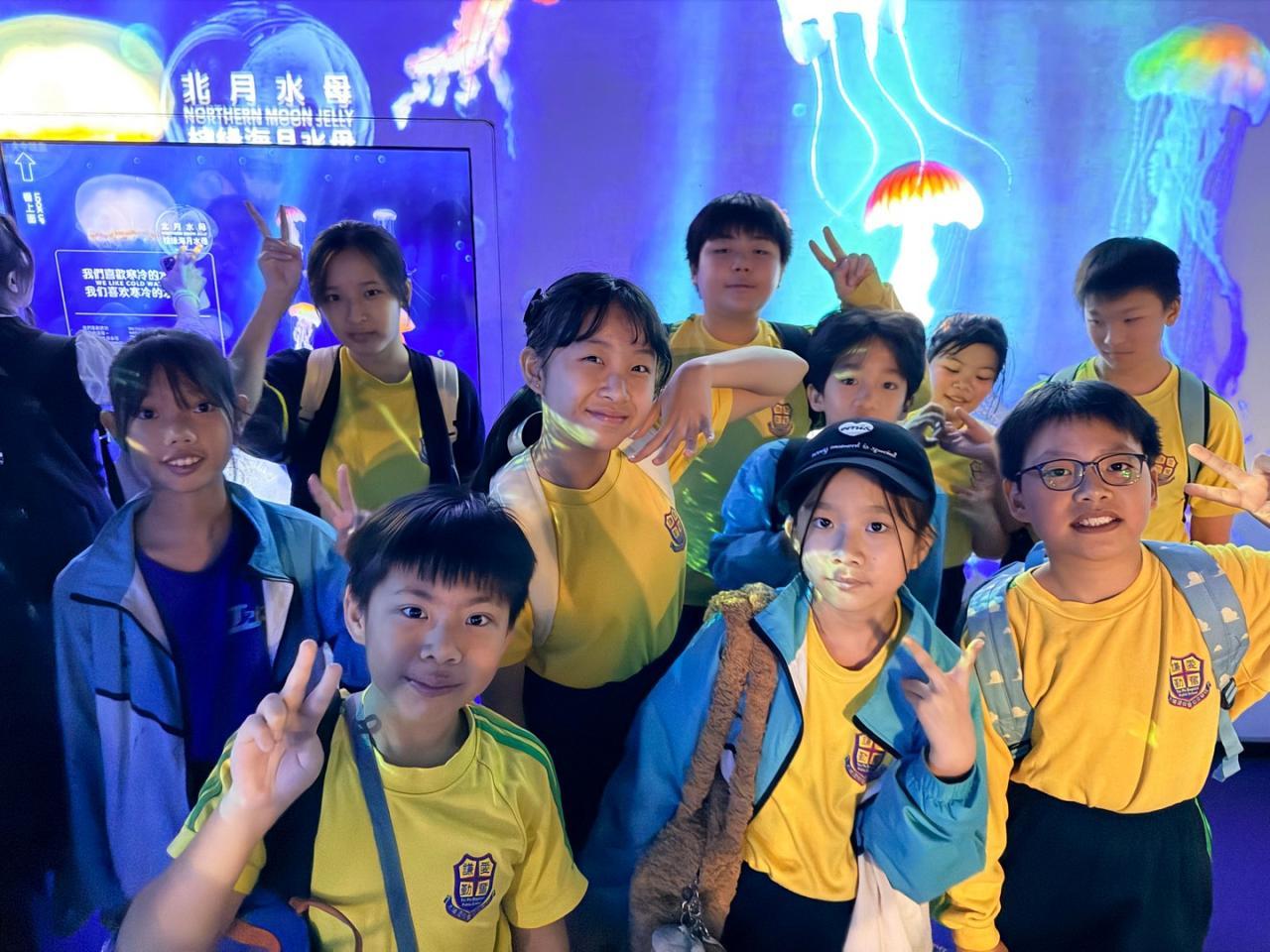 六年級的同學們展開了一場特別的「海陸空之旅」! 我們一入園就搭乘纜車上山,從高空俯瞰美景。在鯊魚館和水母館探索神秘的海洋世界,被水母夢幻的光影深深吸引!
