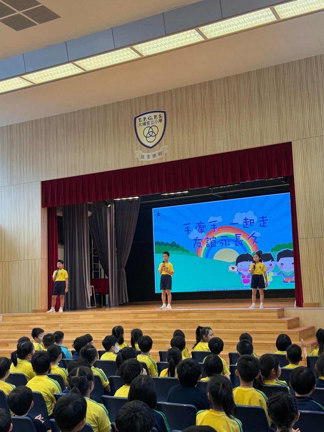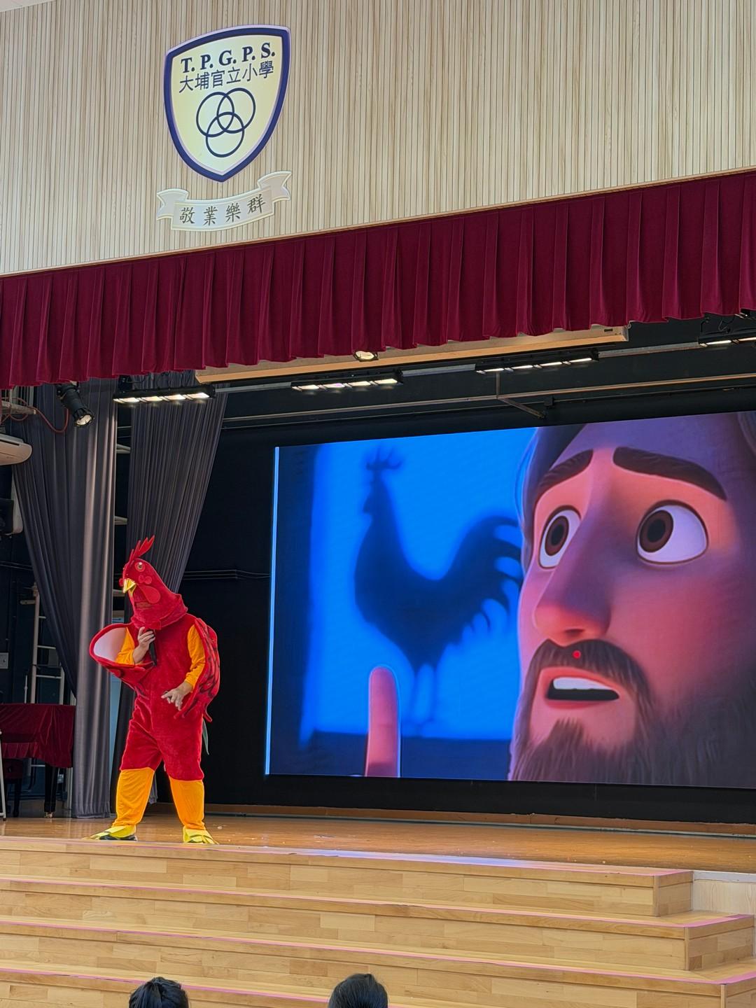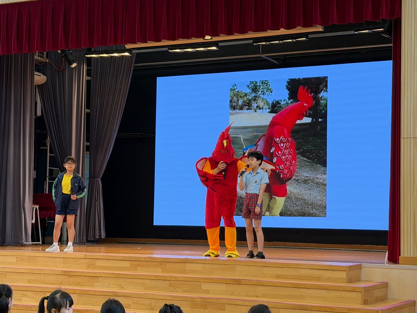 * 驚喜話劇與詩歌:崇拜中,潮牧師和同學們穿上鮮紅雞寶寶服飾,生動演繹《路加福音》24章的聖經故事,以及遇見復活主的喜悅,全場更齊聲合唱〈你是我的好朋友〉,二愛和二德班更獻唱詩歌All  things bright and beautiful,歌聲響徹禮堂。