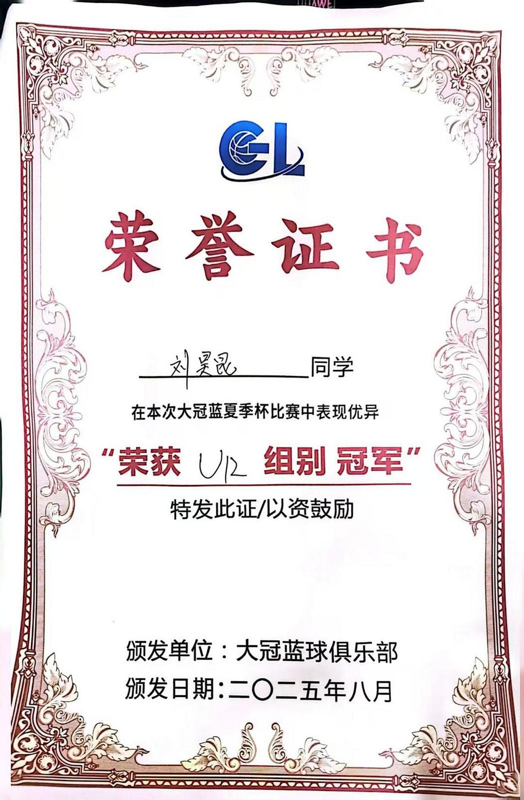 恭喜男子籃球隊隊員 6K 劉昊昆同學分別於大冠籃夏季杯U12組別及2025至26賽季路人王青年籃球賽深圳站勇奪冠軍及亞軍