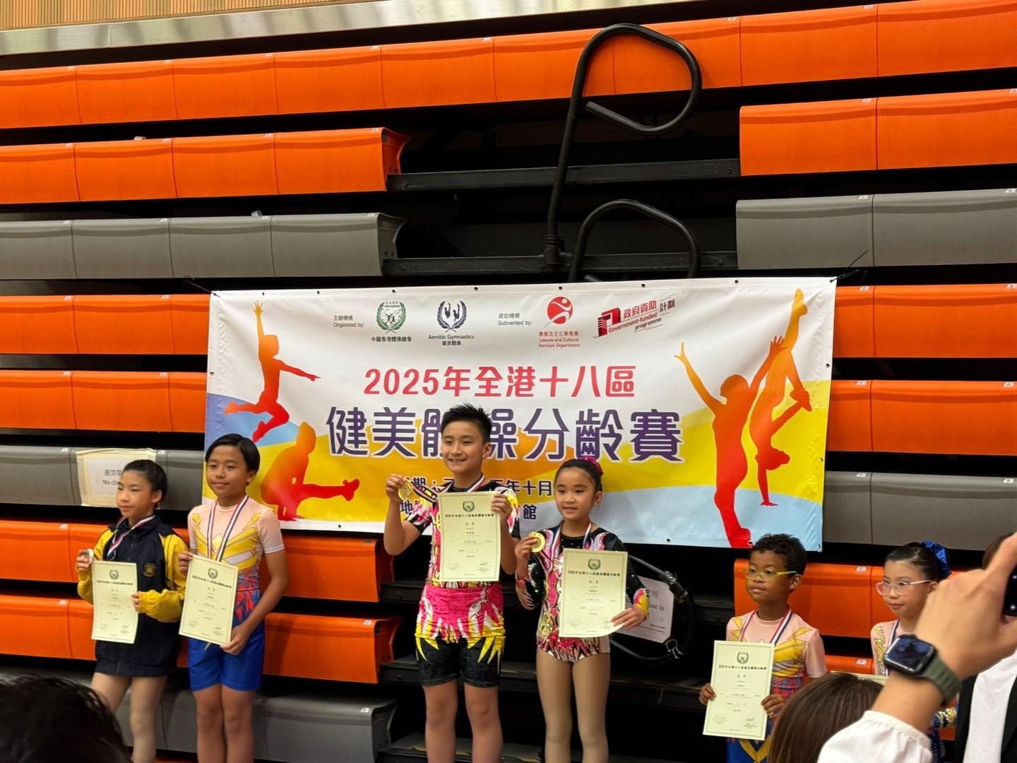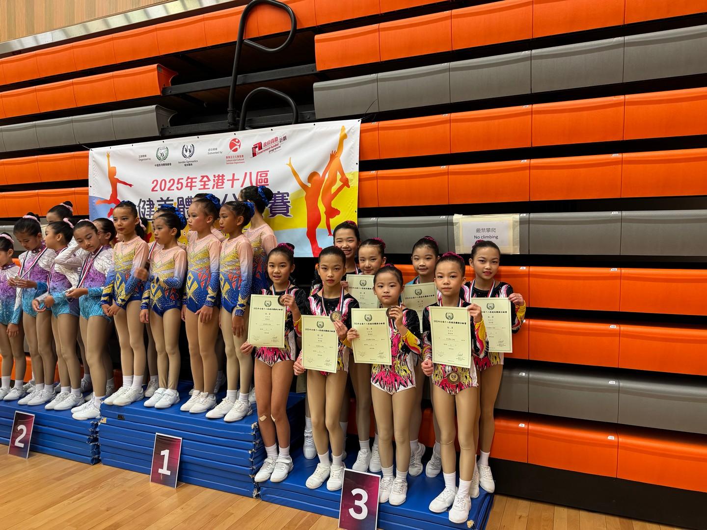 本校健美體操隊於10月12日的2025全港十八區健美體操分齡賽中表現出色,獲得下列獎項: