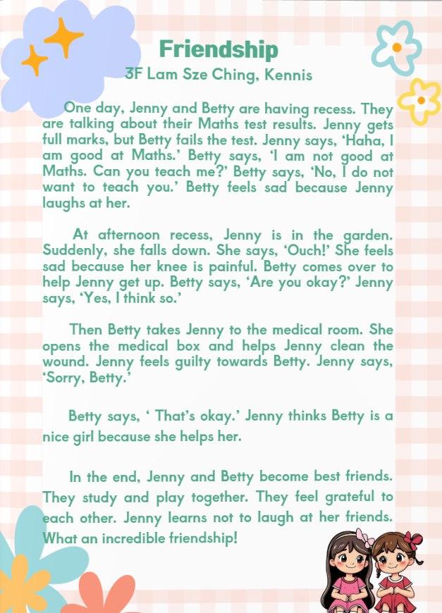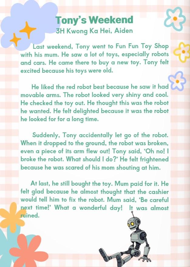 不論是明信片的簡單問候、對生活細節的描寫,還是故事中的情感流露,每一篇作文都記錄了同學們在學習路上的點滴成長。這群 P.2 與 P.3 的小小作家,正透過流暢的英文筆觸,一步步地表達自我。