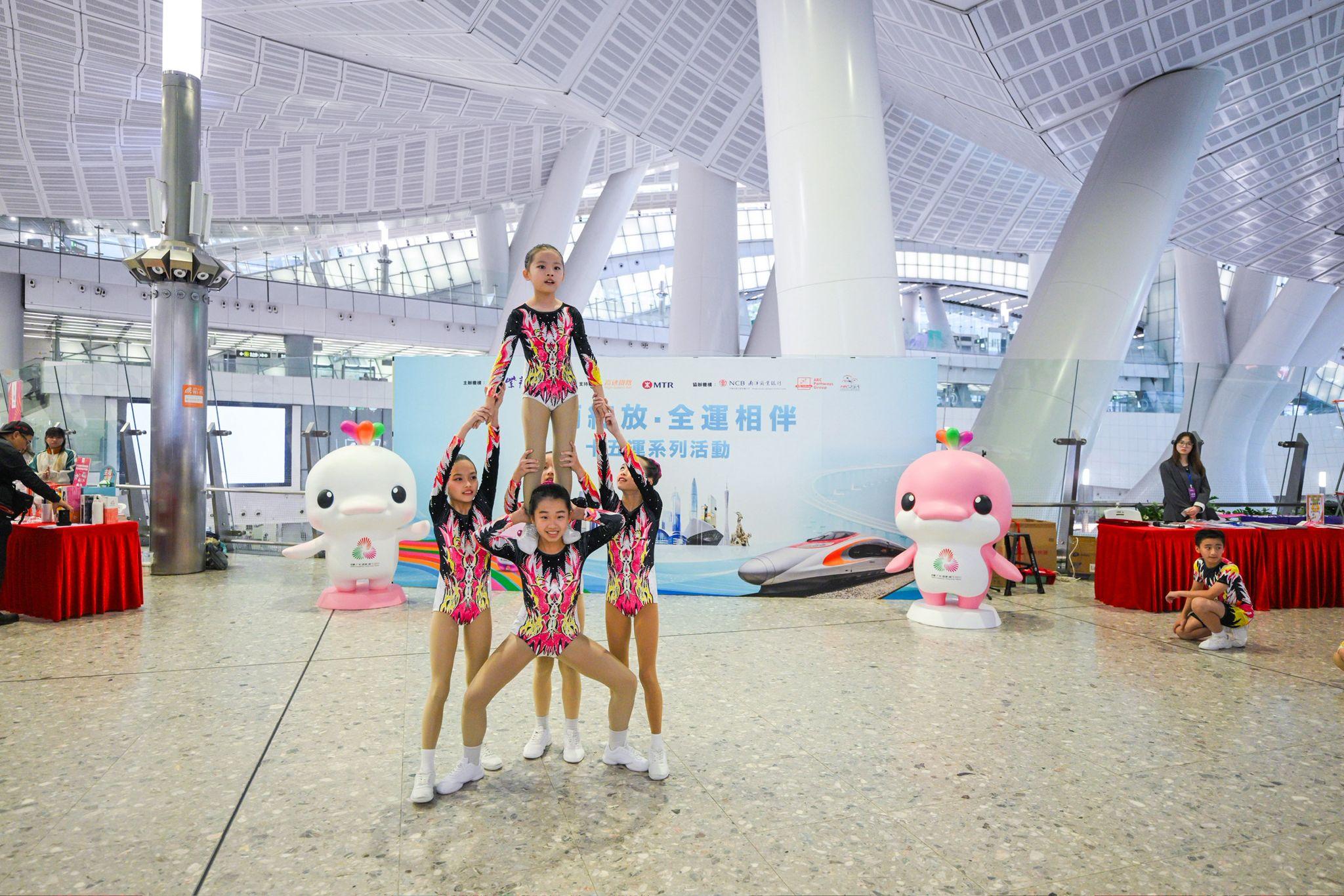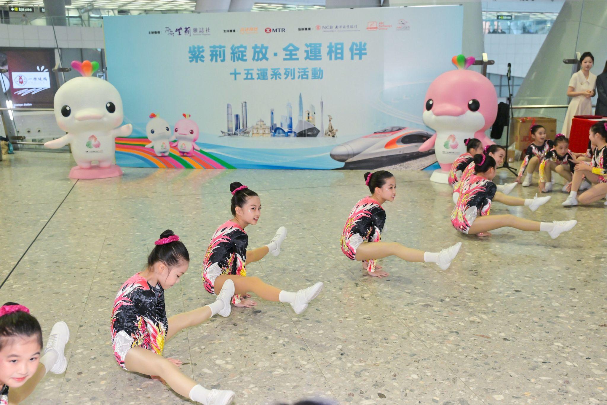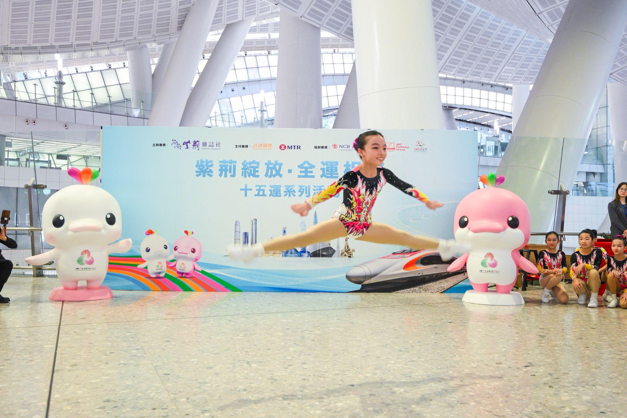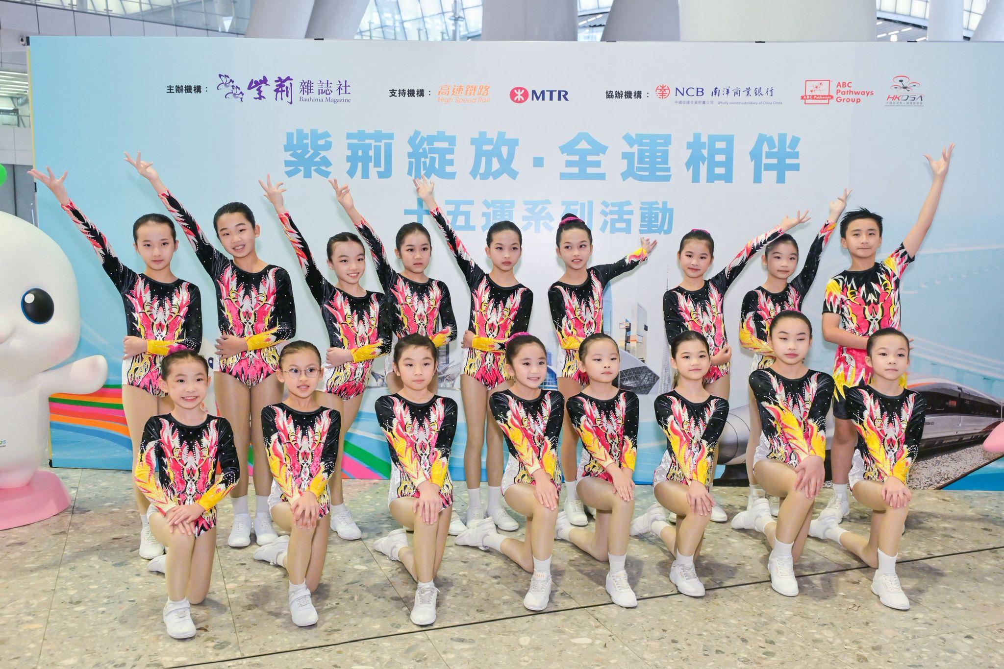 為配合第十五屆全國運動會的盛大開幕,本校健美體操隊有幸獲邀參與由紫荊雜誌社主辦,南洋商業銀行、ABC Pathways Group、中國香港無人機運動總會協辦,港鐵公司支持的“紫荊綻放·全運相伴”十五運系列活動啟動儀式。作為表演團隊,我校健美體操隊員展現活力,獲得了大大的掌聲。