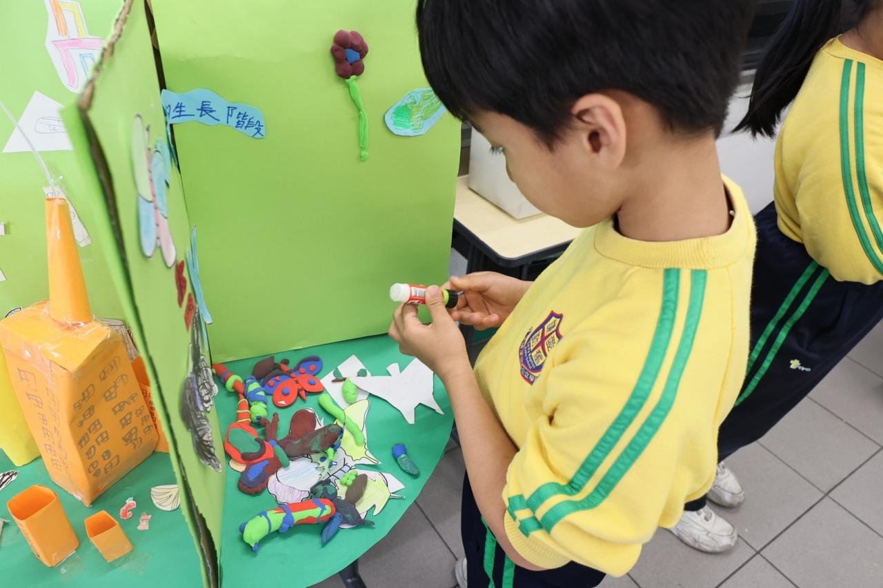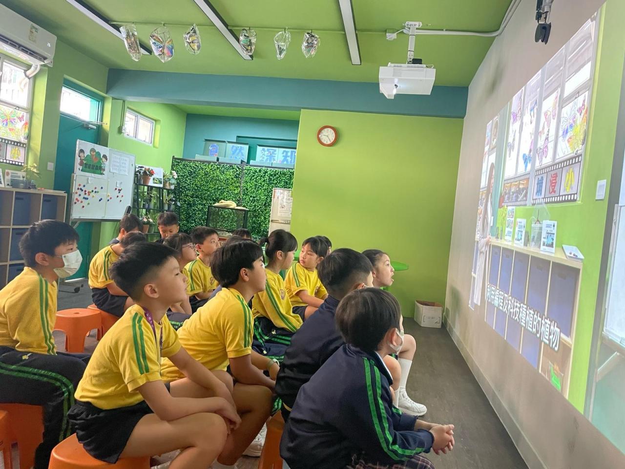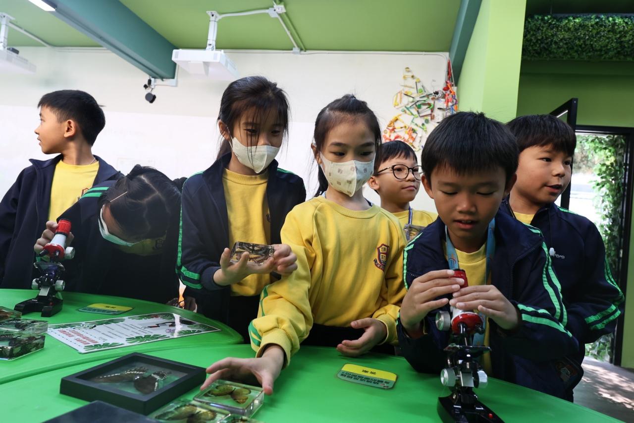 - 同學亦走到校舍新建的「自然探知館」,參觀手工創作的蝴蝶,智能種植裝置,以及有關蝴蝶的保育知識。