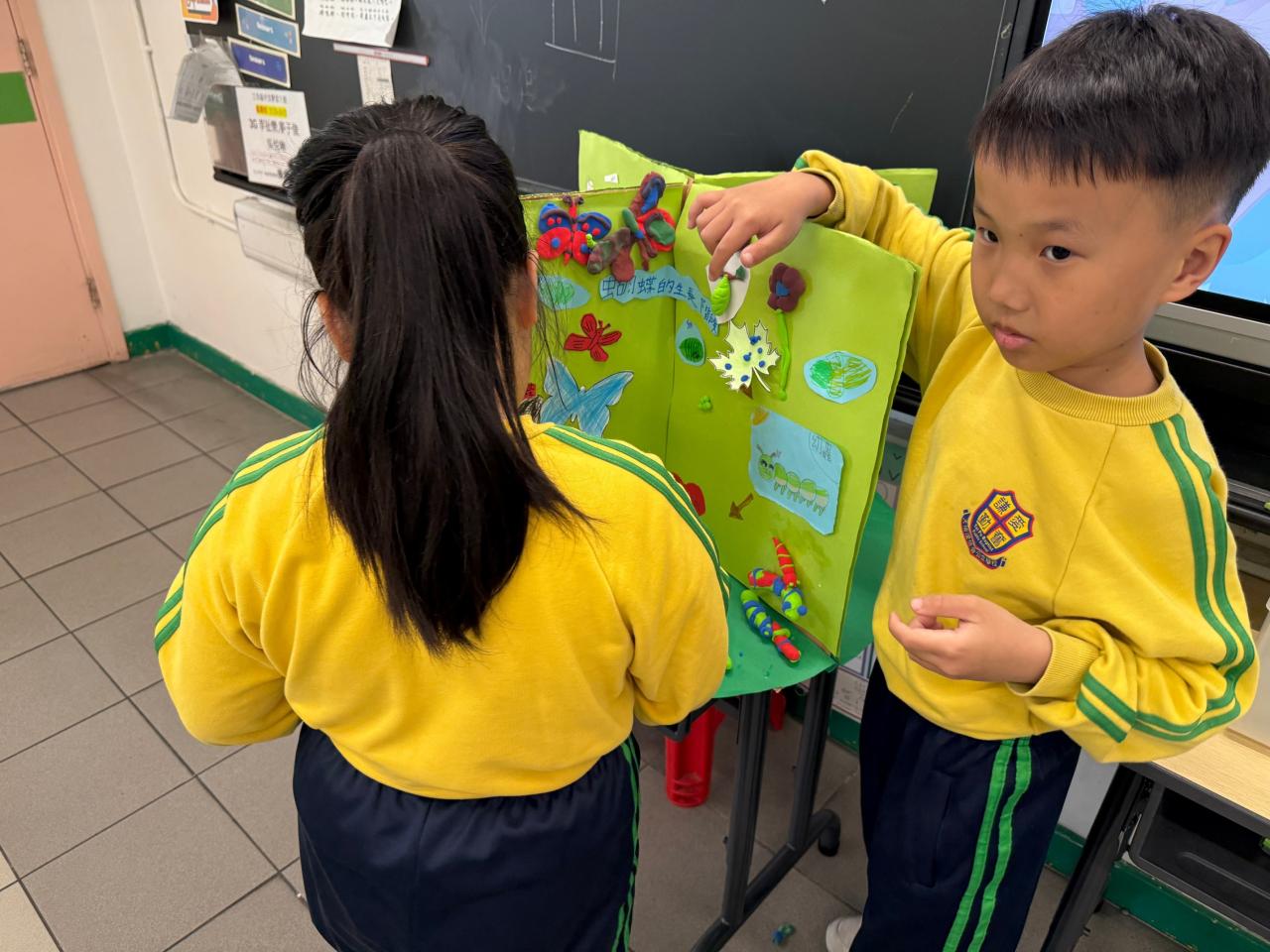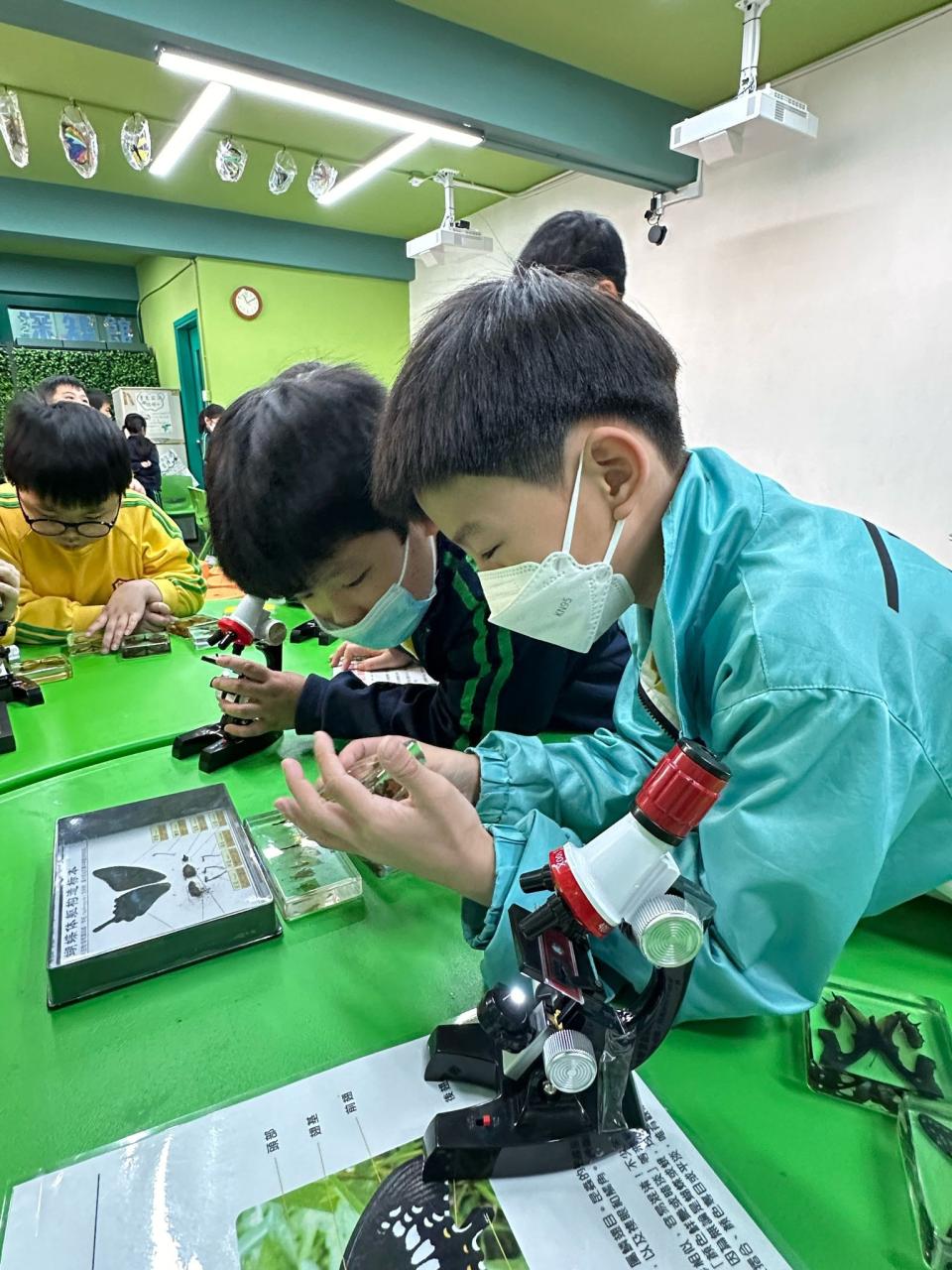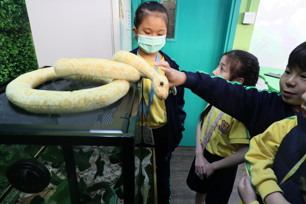 - 同學亦走到校舍新建的「自然探知館」,參觀手工創作的蝴蝶,智能種植裝置,以及有關蝴蝶的保育知識。