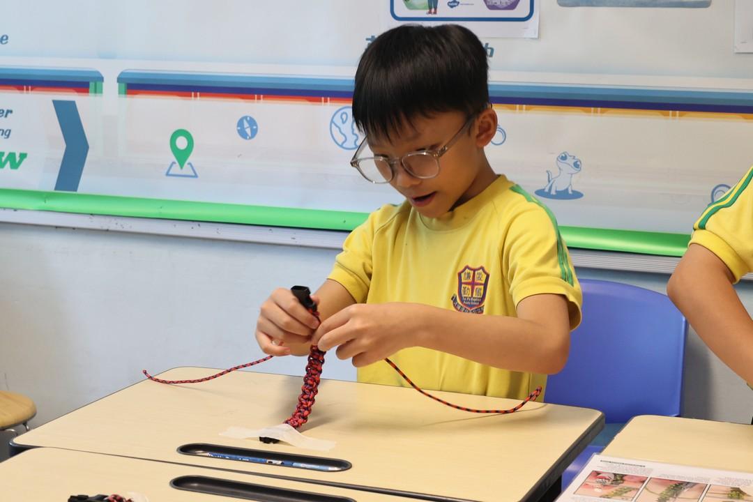 LBD課程巡禮:求生手繩編織及單車課程 四信及四德班於下午的LBD課程,參與野外生活課。孩子於課堂認識了野外生活及求生基本原則,並親自編織屬於同學自己的求生手繩。透過親身體驗,他們在過程中學會的于只求生手繩配件及繩結編織的技巧,更是一份耐心、成就感和欣賞美的眼睛。 四愛及四德班則於操場推行為期4週的單車體驗,學習基本單車技巧及安全知識。看見同學們於練習時充滿笑容,相信他們必定享受其中。
