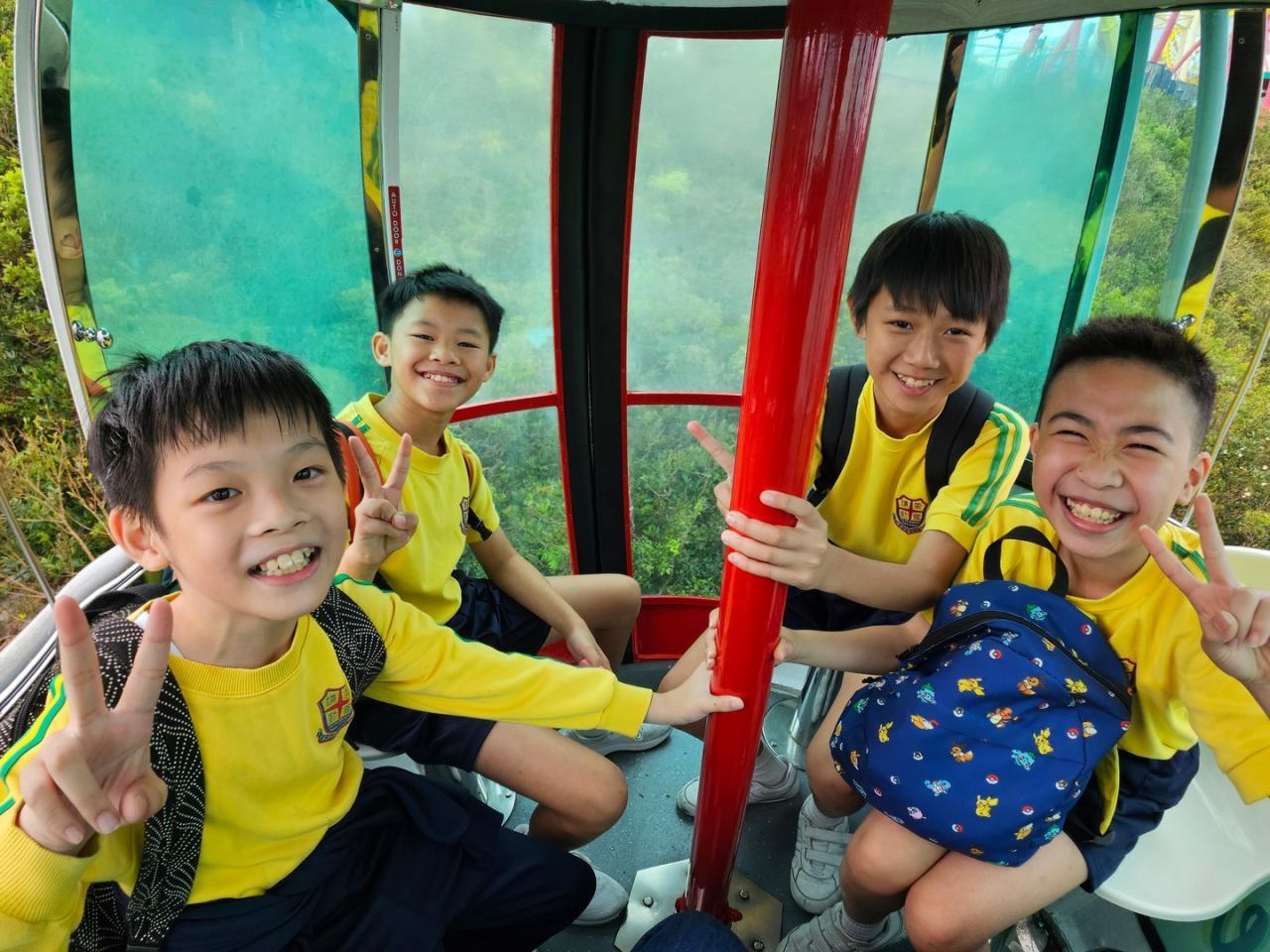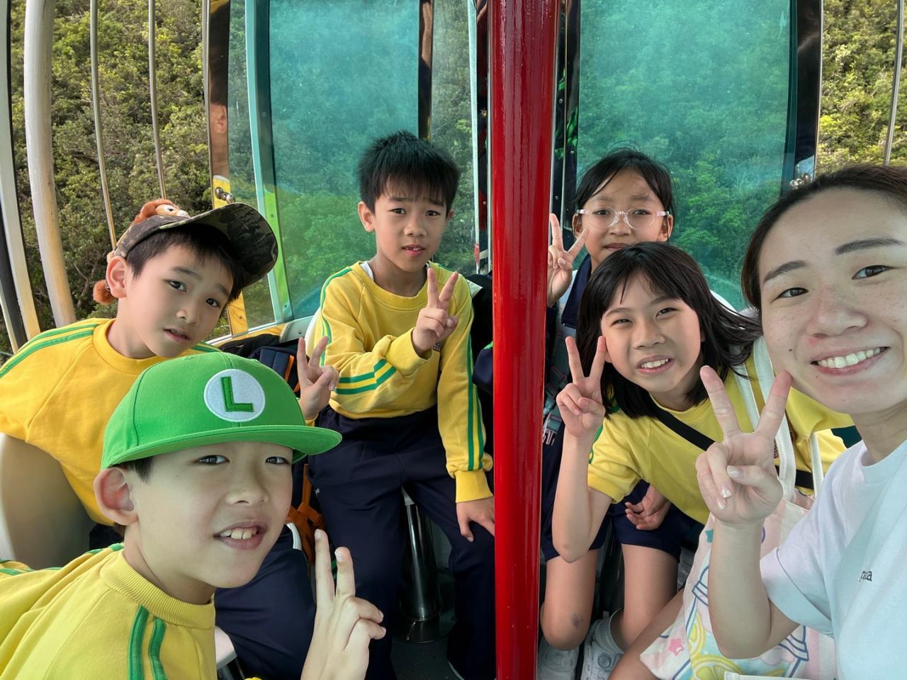 六年級的同學們展開了一場特別的「海陸空之旅」! 我們一入園就搭乘纜車上山,從高空俯瞰美景。在鯊魚館和水母館探索神秘的海洋世界,被水母夢幻的光影深深吸引!
