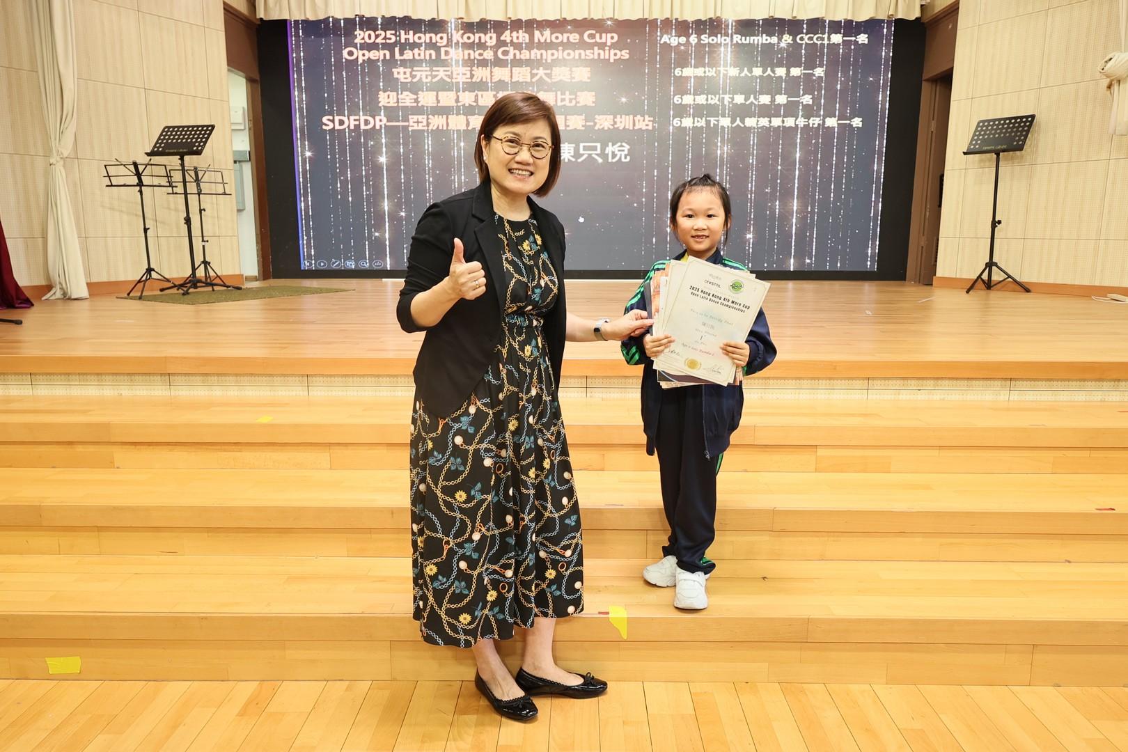 6歲以下單人精英單項牛仔第一名、恰恰第四名及倫巴第四名