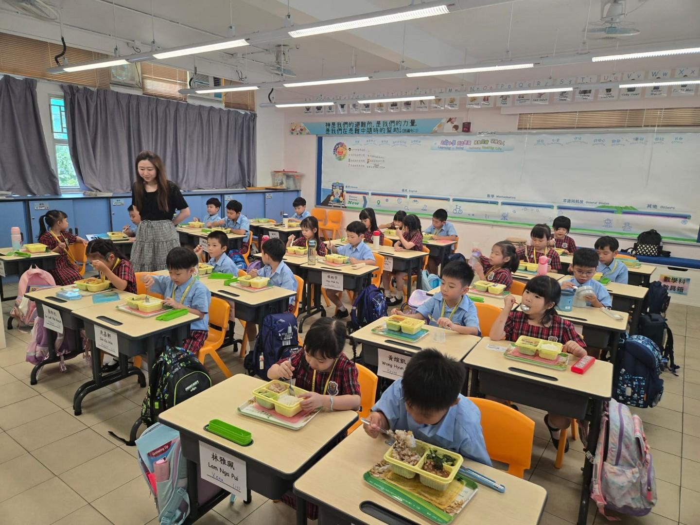 感謝午膳義工姨姨在9月9日至19日期間協助班主任教導小一學生處理午膳事宜,使他們在兩週內學會了自行領取飯盒及清理餐盤等流程。小一學生在進行午膳時面露笑容,享受與同學們一起用餐的樂趣。