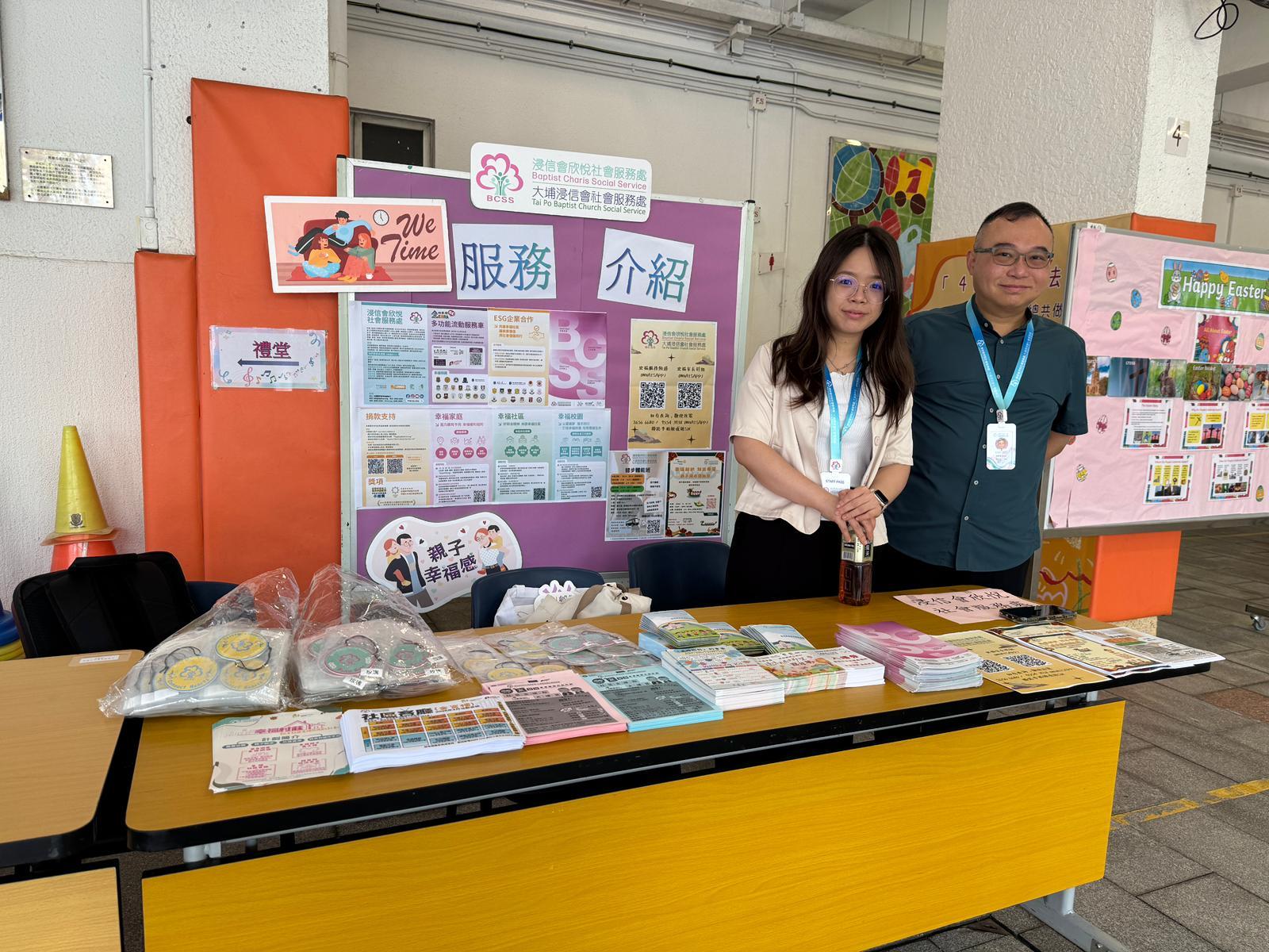 浸信會欣悅社會服務處,設有攤位簡介機構活動;同時安排「國家安全教育」攤位,讓同學在生動互動中認識國家安全的重要性。