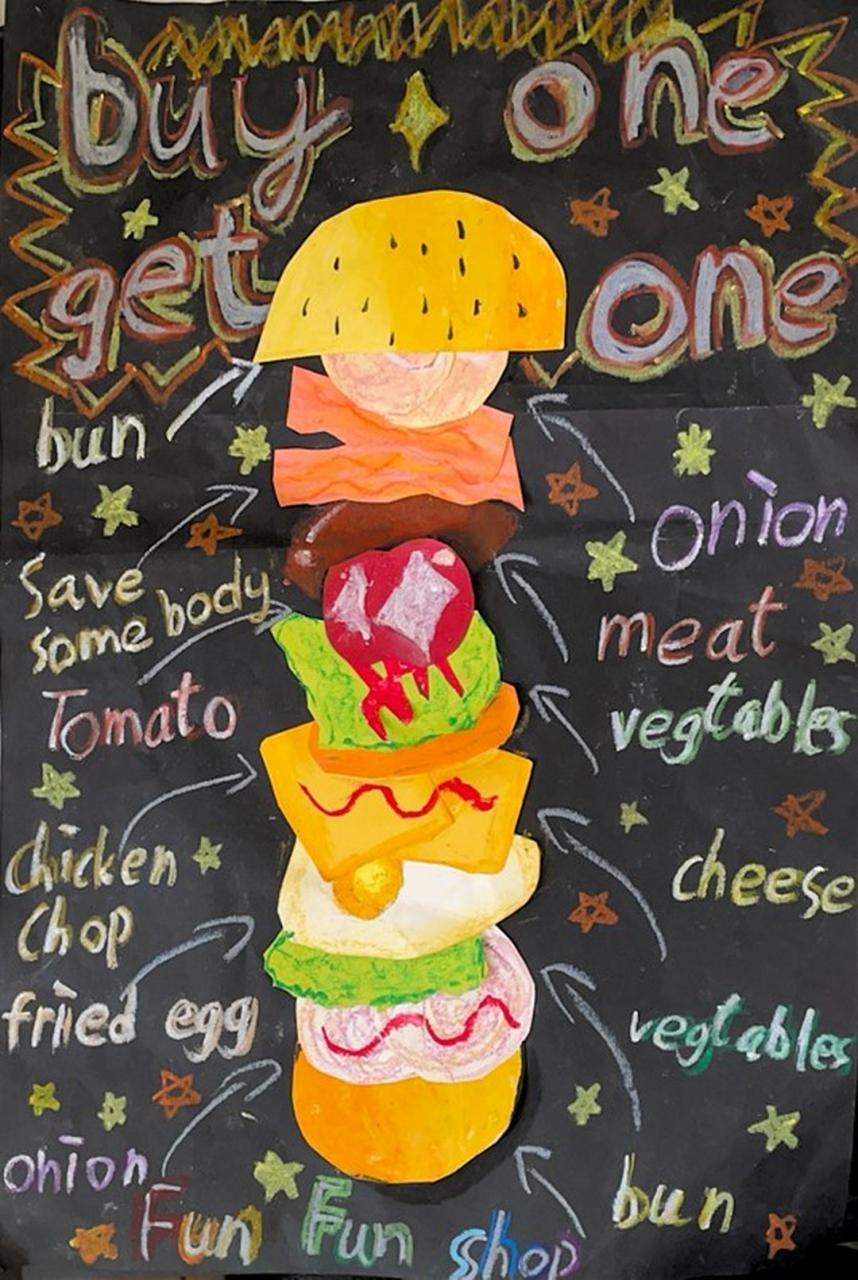 三至四年級的視藝作品多樣,創作主題包括大自然、動/植物生態等。同學們運用油粉彩、廣告彩、剪紙及拼貼等技法,展現創意,表達對環境保護的認識與感受,並以色彩鮮明的風格創作作品。